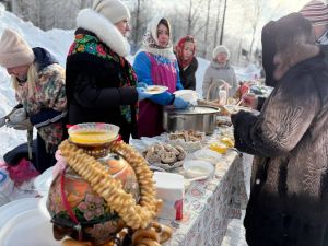 С самого утра здесь звучит народная музыка, проходят игры и хороводы, гости угощаются блинами, пловом и горячим чаем.
