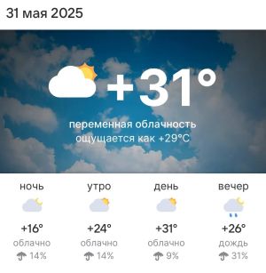 Прогноз погоды в Высокогорском районе 31 мая 2025 года