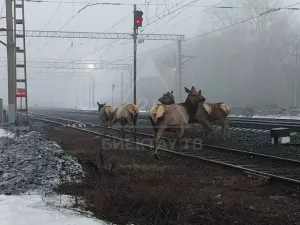 Ранним утром в Куркачах мужчина заметил стадо оленей, спокойно гулявших по железной дороге. Видео и фото показывают, как животные исследуют рельсы и окрестности.