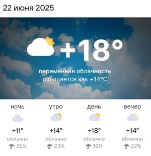 Прогноз погоды в Высокогорском районе на 22 июня 2025 года